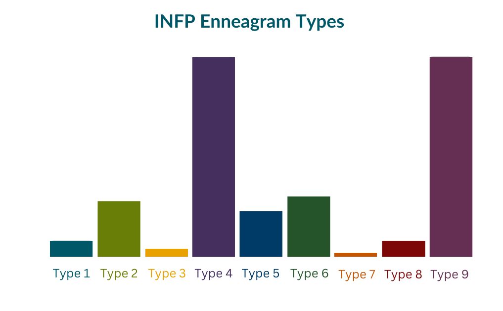 您会注意到 INFP 通常是 4 型或 9 型。同样,我们看到 INFP 很少以 3 型或 7 型的身份做出反应,这可能主要是由于内向方面。